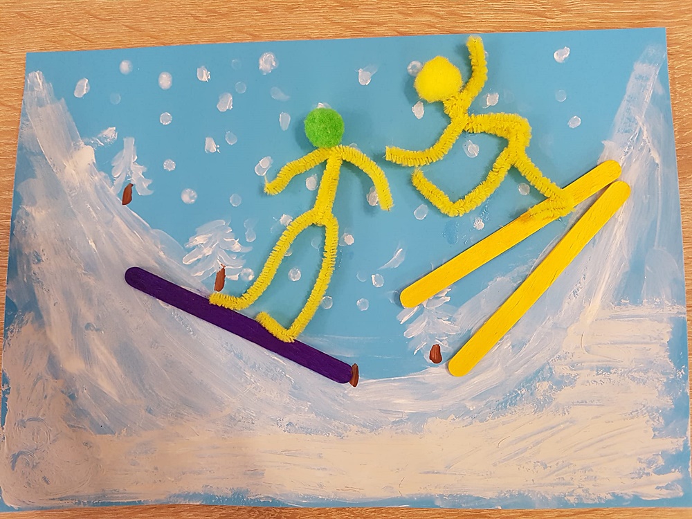 - Zajęcia plastyczno – techniczne „Niedźwiadki Polarne Patyczkami Malowane oraz Nasi Narciarze i Snowboardziści”,