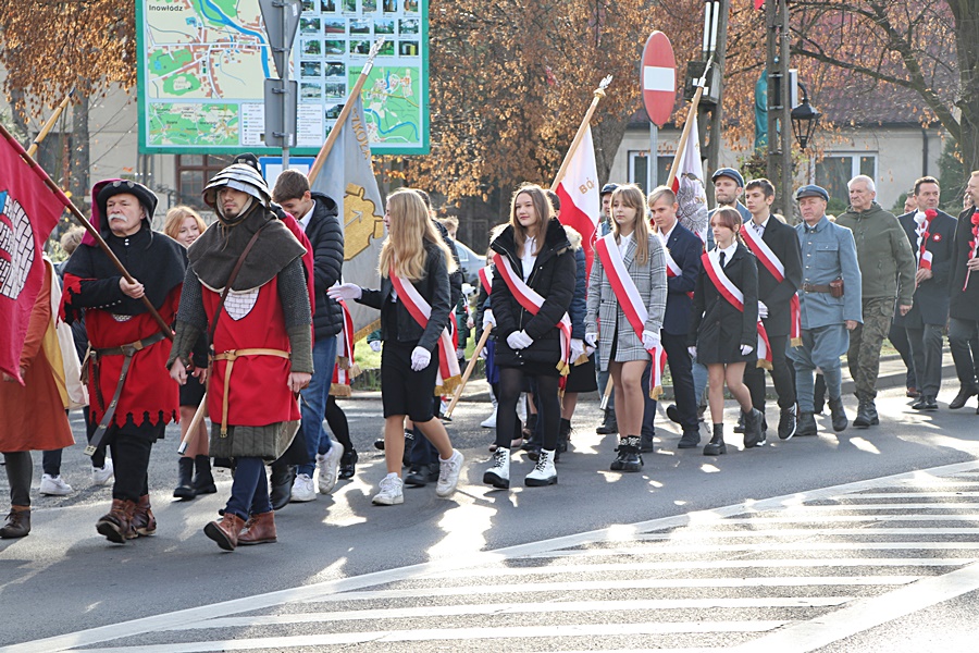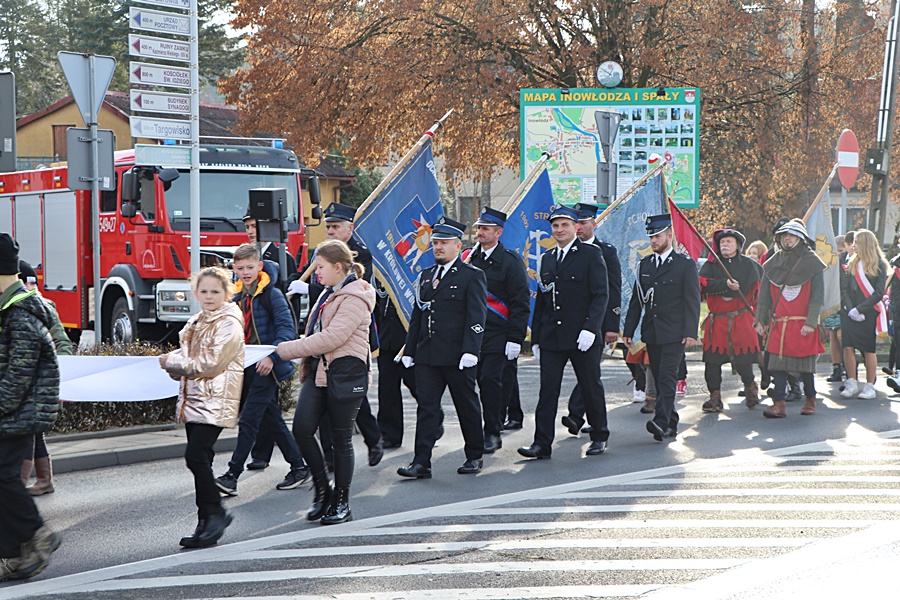 W Gminie Inowłódz uroczystość 11 listopada rozpoczęła się o godz. 09.00, mszą świętą w intencji Ojczyzny w kościele parafialnym w Inowłodzu. Na zaproszenie Wójta Gminy Inowłódz przybyły delegacje radnych, sołtysów, przedstawiciele OSP, stowarzyszeń, szkół, pracownicy kultury i urzędu gminy, reprezentacje instytucji współpracujących z samorządem, harcerze, uczniowie oraz mieszkańcy. Po wspólnej modlitwie wszyscy zgromadzeni, na czele z pocztami sztandarowymi oraz jeźdźcami konnymi ze Stowarzyszenia Ułanów im. Oddziału Wydzielonego Wojska Polskiego mjr. Hubala udali się ulicami Inowłodza do parku przy OSP, gdzie nastąpiło uroczyste podniesienie flagi państwowej na maszt i odśpiewanie hymnu narodowego. Następnie w przemówieniu okolicznościowym wystąpił Wójt Gminy Inowłódz Pan Bogdan Kącki, nawiązując do niezwykle ważnych wydarzeń w dziejach naszego kraju. Podziękował za liczne przybycie i uczczenie pamięci, o tych którzy zginęli w walce za ojczyznę. Kolejną częścią uroczystości było złożenie kwiatów i zniczy przy pomniku przez przedstawicieli władz samorządowych Gminy Inowłódz oraz przybyłych licznie delegacji. Po części oficjalnej uczestnicy obchodów Święta Niepodległości wysłuchali programu artystycznego przygotowanego przez Dziecięco Młodzieżowy Zespół Ludowy CEKINKI pod kierownictwem Pana Zbigniewa Kosylaka w wspaniałym koncercie pieśni patriotycznej. Na zakończenie święta odbył się piknik patriotyczny, a na uczestników czekała ciepła grochówka przygotowana przez Panie z KGW Brzustów.