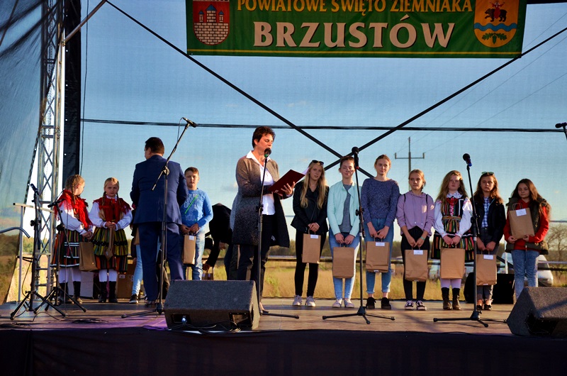 W sobotę 29 września br. odbyło się XIII Powiatowe Święto Ziemniaka w Brzustowie. Oficjalnego otwarcia i powitania gości dokonali: Pan Mirosław Kukliński wraz z Wójtem Gminy Inowłódz Panem Bogdanem Kąckim. Na scenie zaprezentowały się lokalne Zespoły Ludowe: „BRZYSTOWIANIE”, „KRÓLOWIANIE” oraz Gminny Dziecięcy Zespół Ludowy „CEKINKI”. Ponadto wystąpili: Zespół Pieśni i Tańca „DRZEWICZANIE” oraz „SŁONECZNA JEDYNKA”- Klub Seniora z Tomaszowa Mazowieckiego. Tegoroczną gwiazdą wieczoru była Patrycja Runo. Komisja w składzie: Barbara Robak, Ewa Korzeniewska, Marzena Pązik wyłoniła zwycięzców w Konkursie na Reklamę Ziemniaka, do którego przystąpiło 8 reprezentacji KGW. I miejsce zajęło KGW Wielka Wola z gminy Czerniewice. Z kolei największego ziemniaka zgłosił Pan Piotr Bojdo z Bobrowca, gm. Rzeczyca. Zwycięski ziemniak ważył 1,15 kg. Rozstrzygnięto również gminny konkurs plastyczny pn. „KOCHAM CIĘ POLSKO ZA TWĄ PRZESZŁOŚĆ SŁAWNĄ” organizowany przez Publiczną Szkołę Podstawową w Brzustowie. Wyniki konkursu przedstawiają się następująco: w kategorii gimnazjum: I m – Iga Włodarczyk, w kategorii kl. VIII. I m- Aleksandra Politowska (Inowłódz) w kategorii kl. IV-VII. I m – Gabriela Grzyb ( Brzustów), w kategorii kl. II-III I m – Magdalena Wieczorek (Brzustów), w kategorii kl. O – I, I m – Joanna Szczepańska (Królowa Wola), nagroda specjalna powędrowała do 3 letniej Igi Domagały. Nagrody w tym konkursie ufundował Wójt Gminy Inowłódz. Wręczone zostały także puchary zwycięzcom powiatowego konkursu w rzucie gumofilcem, który przeprowadzony został w czterech kategoriach: VIP – I miejsce zajął: Pan Mirosław Kukliński Starosta Powiatu Tomaszowskiego z rzutem na odległość 24,5 m, w kat. mężczyzn najdalej rzucił, bo aż 33,50 m Pan Wojciech Mąkola, w kat. kobiet najlepsza była Pani Wiktoria Wajszczyk z rzutem 24,50 m, a wśród dzieci: Nikodem Gawęda rzucie na odległość 16,80 m.