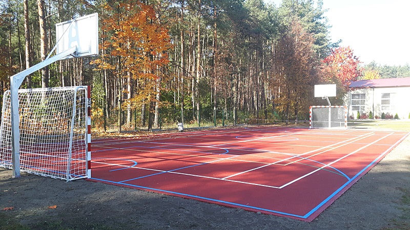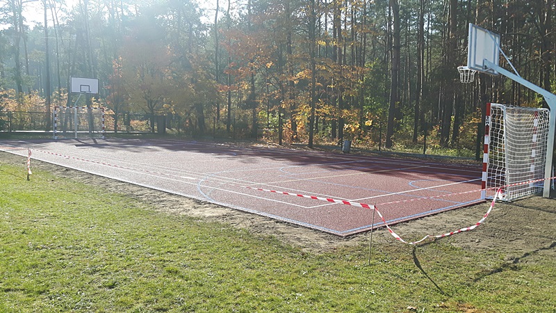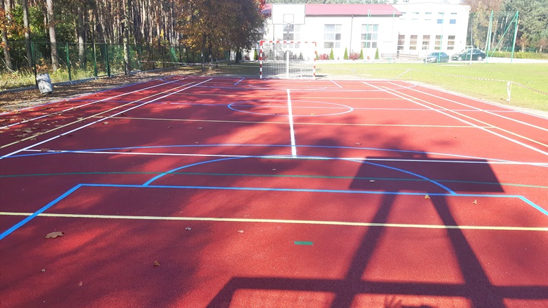 W ramach inwestycji wykonano nawierzchnię sportową poliuretanową (technologia typu natrysk) na podbudowie elastycznej (przepuszczalnej), linie segregacji oraz wyposażono boisko w elementy składowe umożliwiające grę w piłkę ręczną, siatkówkę, tenisa zimnego oraz koszykówkę. Całkowity koszt zadania wyniósł 111 561,00 zł, w tym dofinansowanie w kwocie 67 782,00 zł.